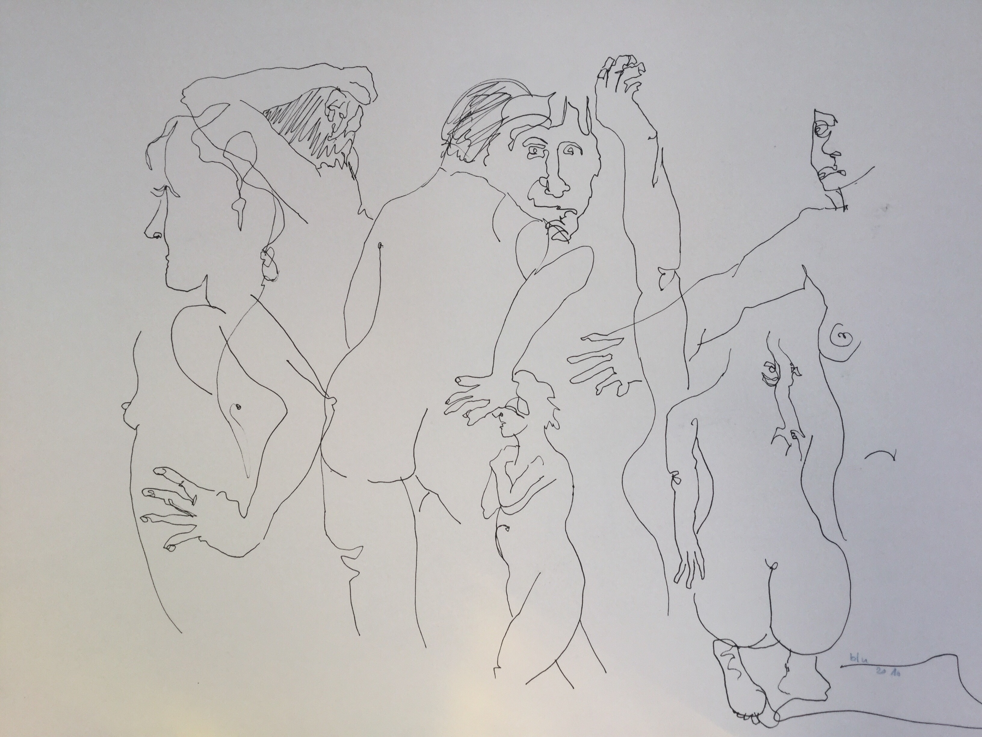 Dieses Bild zeichnete ich nach einem Modell in einem Aktzeichenkurs. Es gibt nach anfänglichem Bibbern und Bangen und Seitenschielen zum Vergleich mit den Malkollegen (oh, Gott, wie gut sind die denn?) immer einen Wendepunkt, an dem meine Muskeln sich entspannen. Jetzt flutet Energie, der Arm schwingt und ganz egal, was andere denken, ich bin frei!