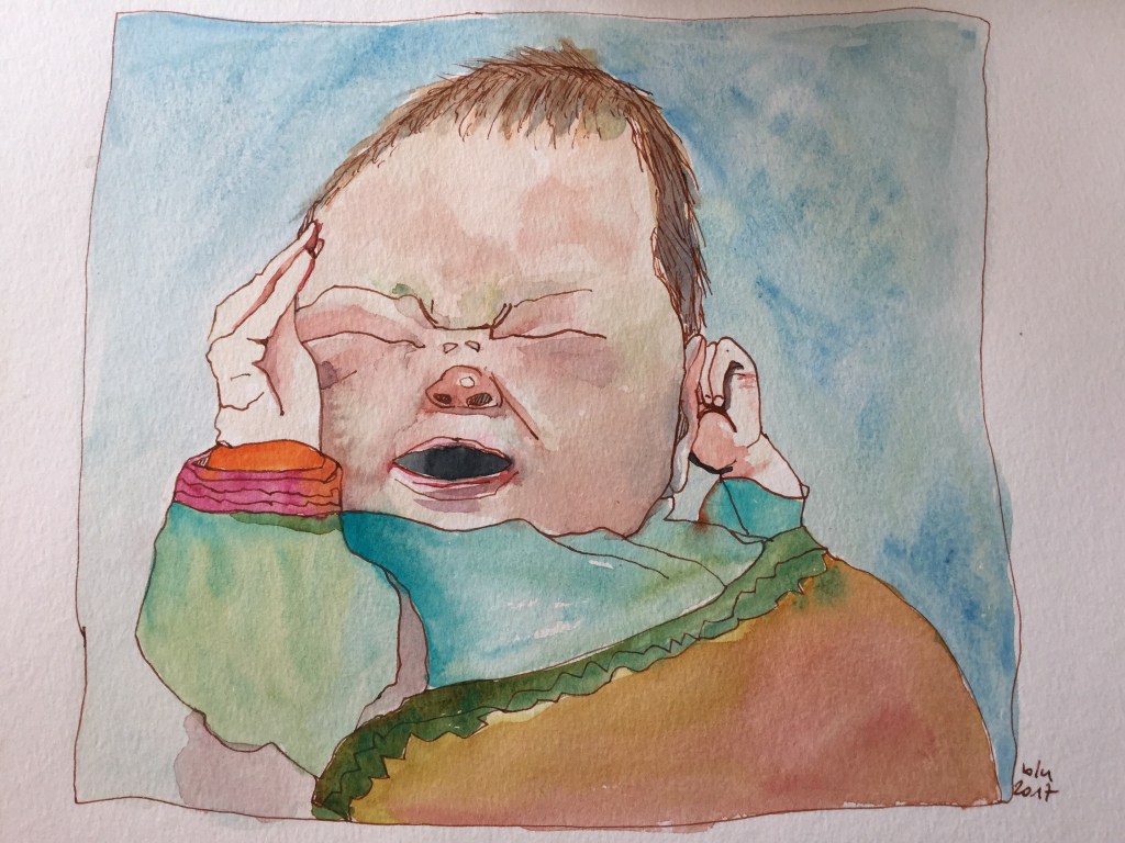 Das erste Baby habe ich in Tinte und Aquarell gemalt, das zweite in Bleistift und Aquarell. Ich habe eine neue limited palette, benutze nur 8 Farben. Jenny Adams empfahl sie bei einem Workshop der urban sketcher. Ursprünglich ist sie von Jane Blundell.