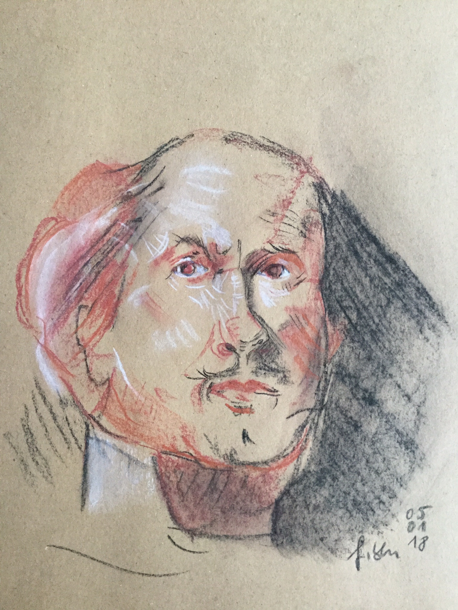 Mit Kreidestaub bedeckt sitze ich hier an meinem Bartisch in der Küche. Gescheitert und völlig groggy. Gestern war ich mit meinem Malbuddy in der Gurlitt-Ausstellung in Bonn. ˋKreide auf Velinpapier´ stand unter sehr vielen Werken.