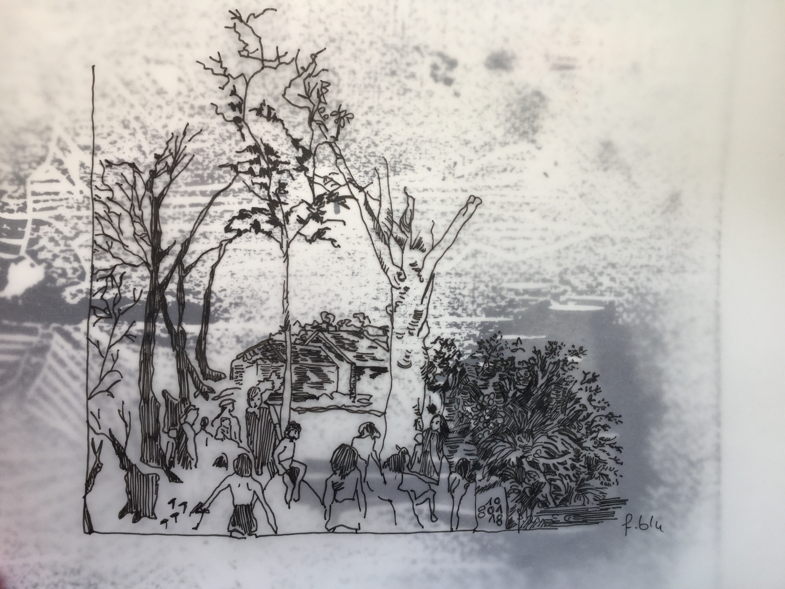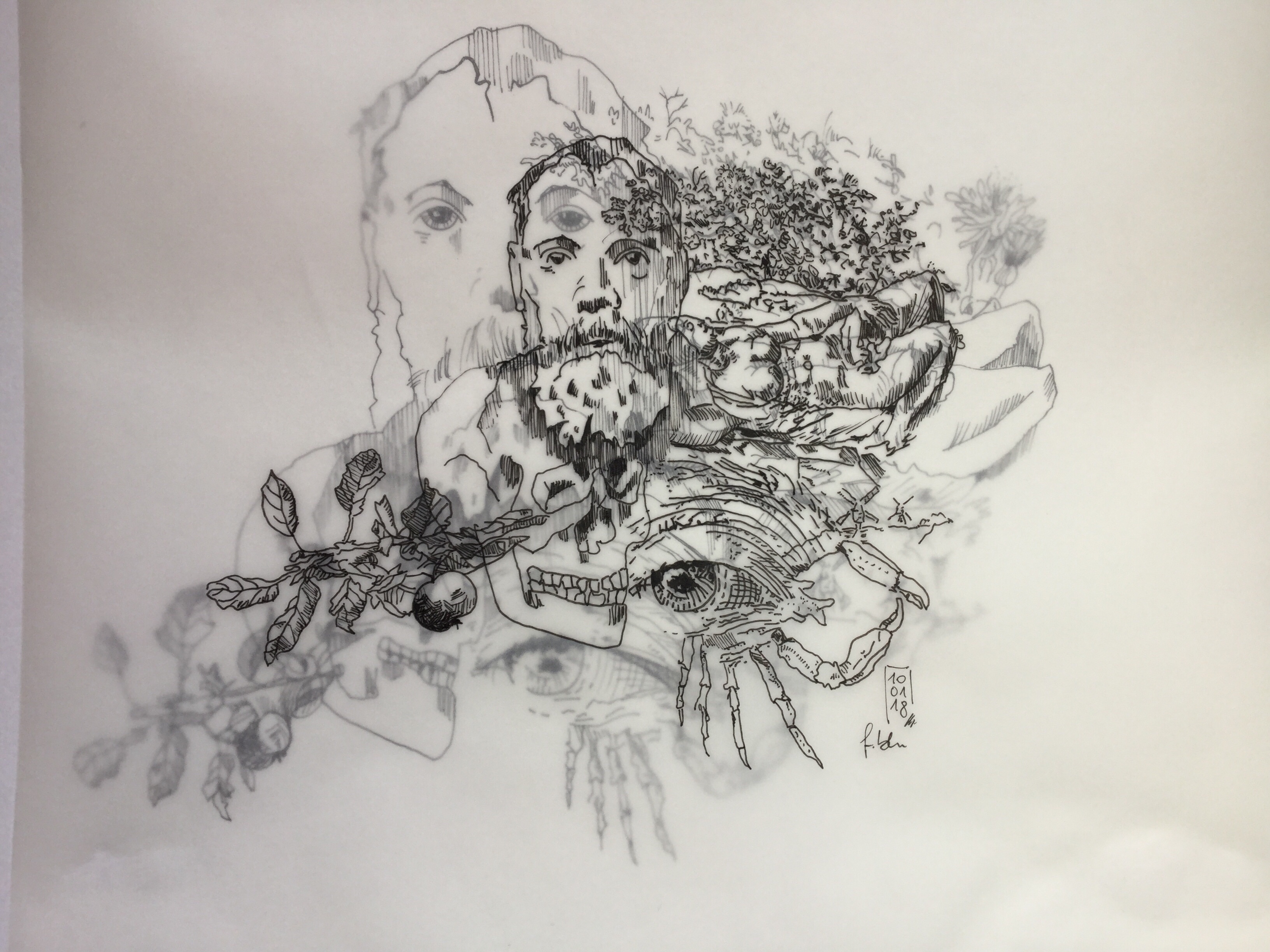 Heute habe ich sowohl auf Pauspapier als auch auf Zeichenpapier gezeichnet. Dann habe ich das transparente Papier auf das weiße gelegt, einmal auf die gleiche Zeichnung, einmal auf einen Druck.