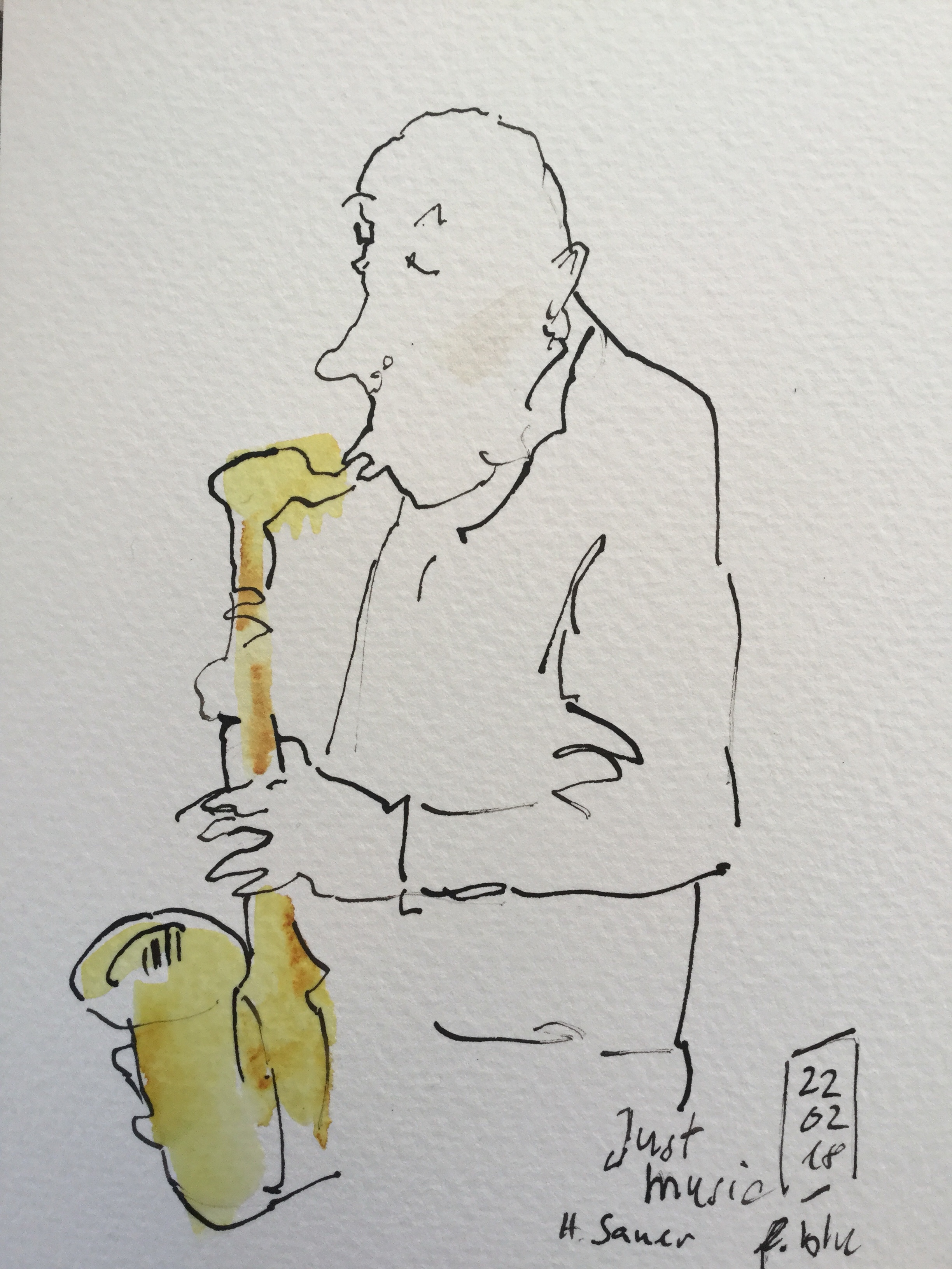 Heinz Sauer kommt rein, klappgliedrig, wie eine große blasse Heuschrecke, setzt das Saxophon beiläufig an, so als ob er das Mundstück testen wollte, bläst und schon ist er drin. Er ist um die 85 und hat einen Sound zum Niederknien.