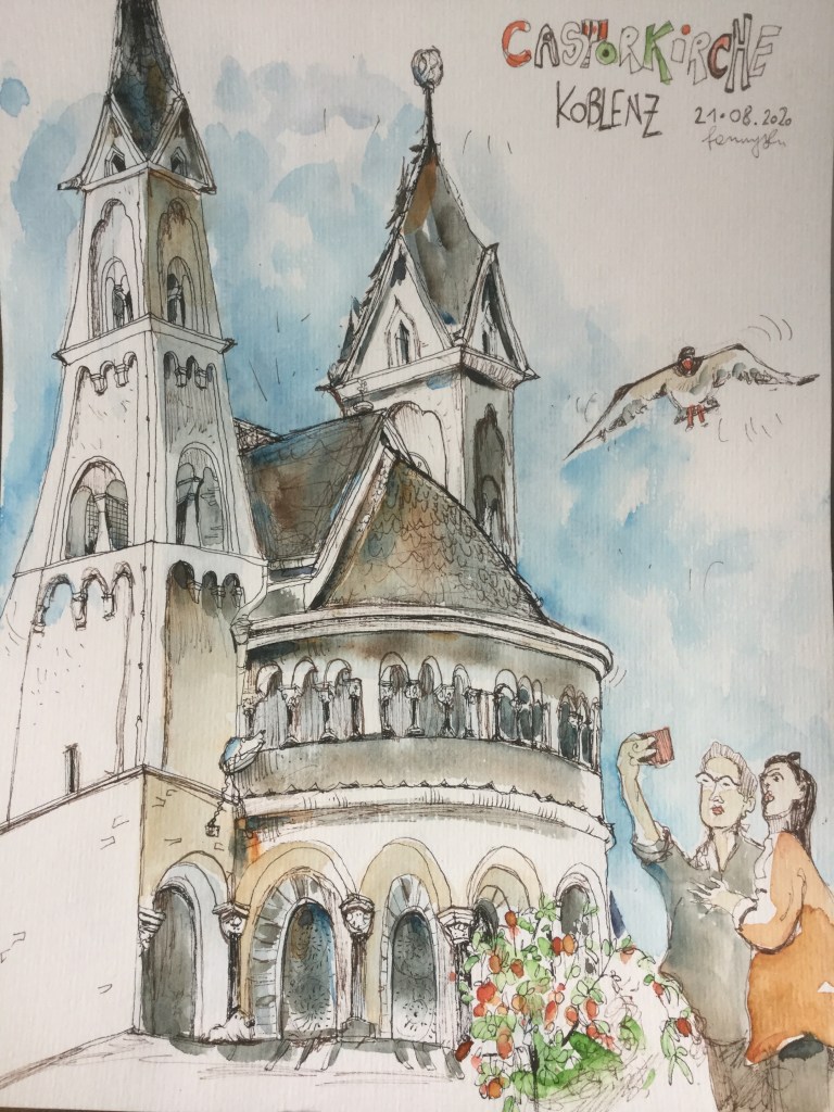 Die Castorkirche ist eine der schönsten Kirchen in Koblenz. Im Rosengarten hinter der Kirche findet man ein kühles Plätzchen inmitten schöner Rosenlauben.