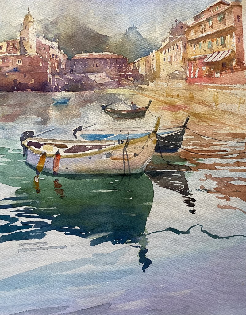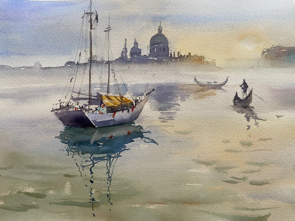 „The sky and water should always have a variation in warm and cold. The buildings in Venice are warmer towards the light source and bluer away from it with more Ultramarine.“
