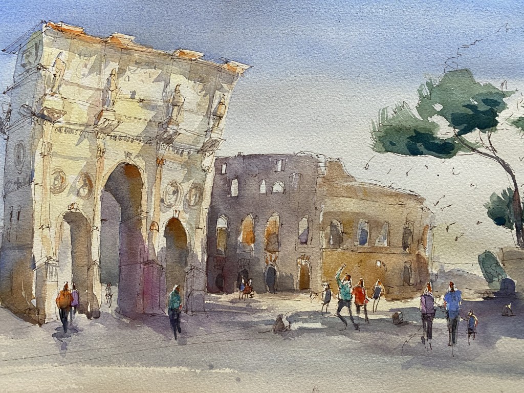 Und schließlich unser letztes Aquarell, das Kolosseum in Rom.
