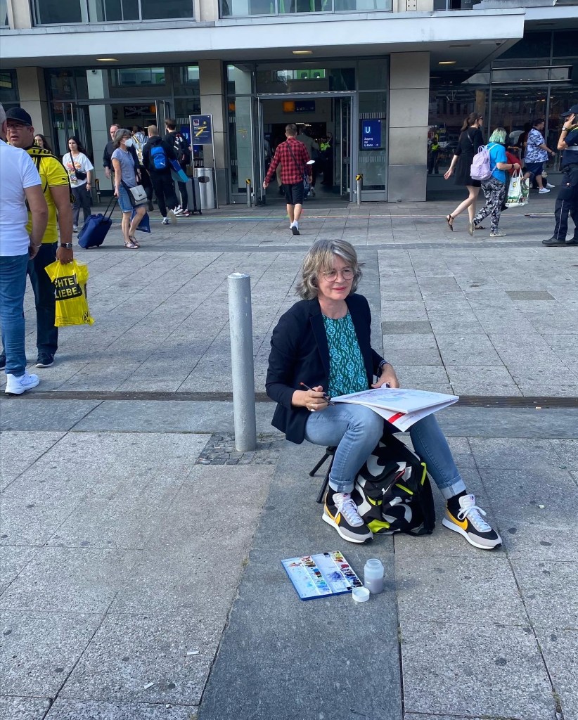 Seit 2018 gebe ich Kurse im Urban Sketching, Skizzenbuchgestaltung, Collage, Aquarellieren und Tintenzeichnung.
