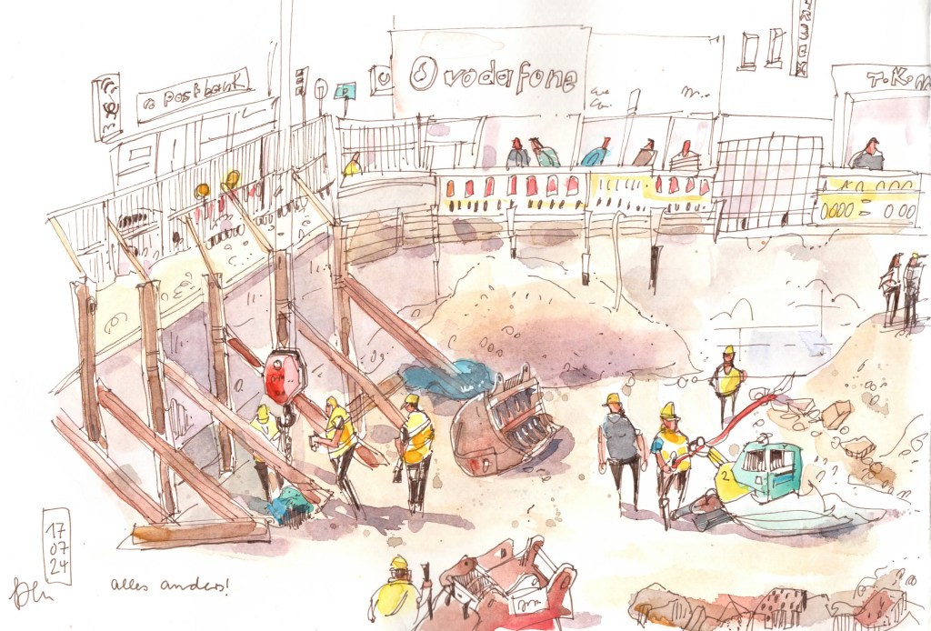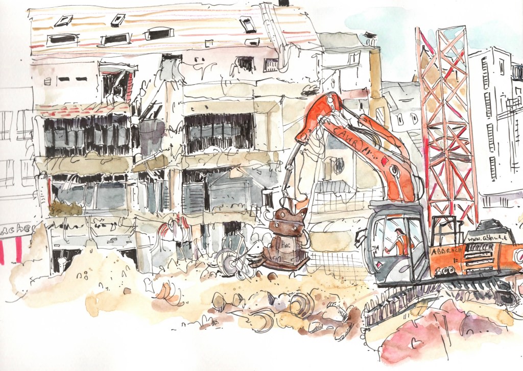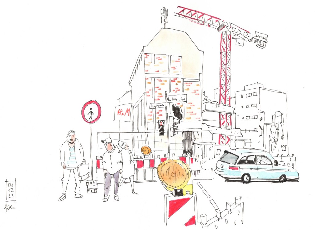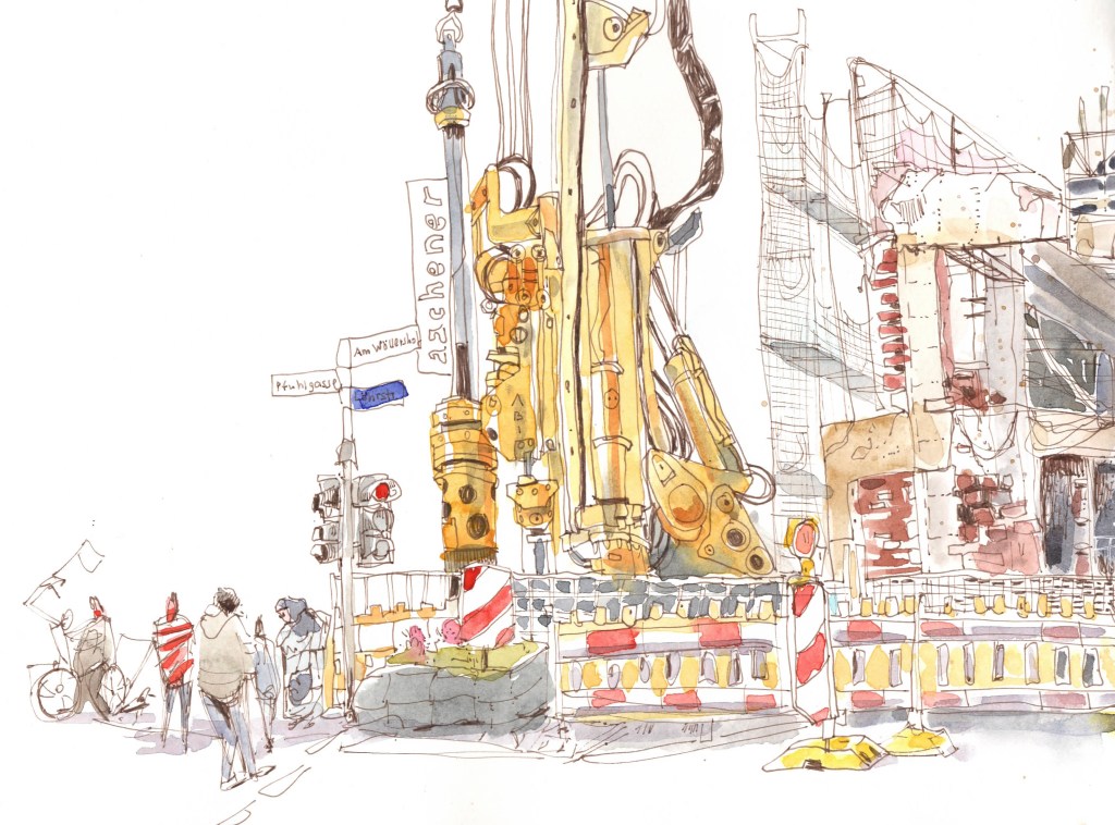 Dies ist eine Serie, die ich vor Ort in Koblenz gezeichnet habe. Es ist die Baustelle an der Ecke-Am Wöllershoff/Hohenfelder Straße.