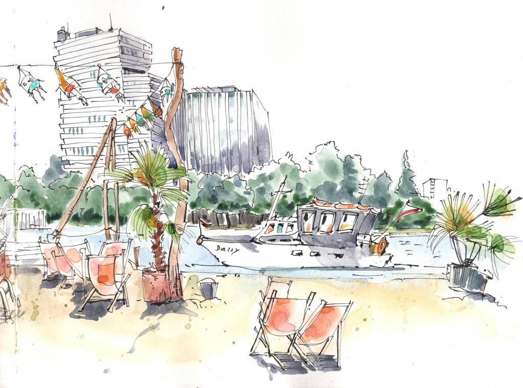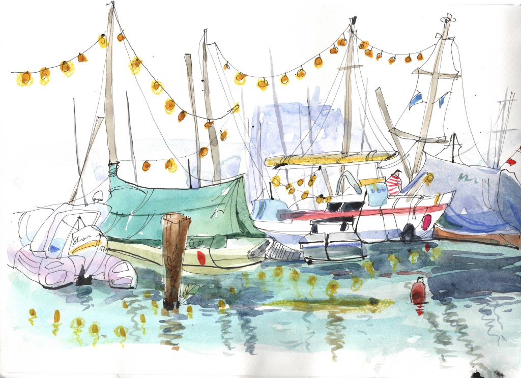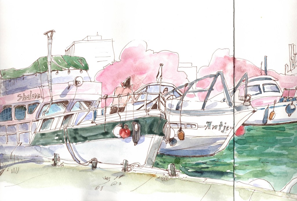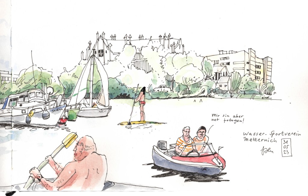 Mit meiner Gruppe Urban Sketcher Koblenz haben wir am Stattstrand Metternich und Bootshafen gezeichnet. Hier seht Ihr ein paar der entstandenen Sketches.